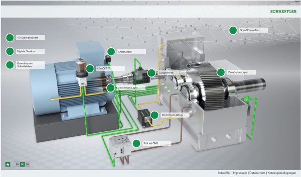 Schaeffler has developed concepts to allow a range of customer applications to be transferred to the digital world and holistically optimized. The platform concepts combine mechatronic products, condition monitoring systems, and digital services to form application-specific 4.0 solution packages. These provide the basis for the creation of customized products and services whose main focus is always on the effectiveness of the overall system.